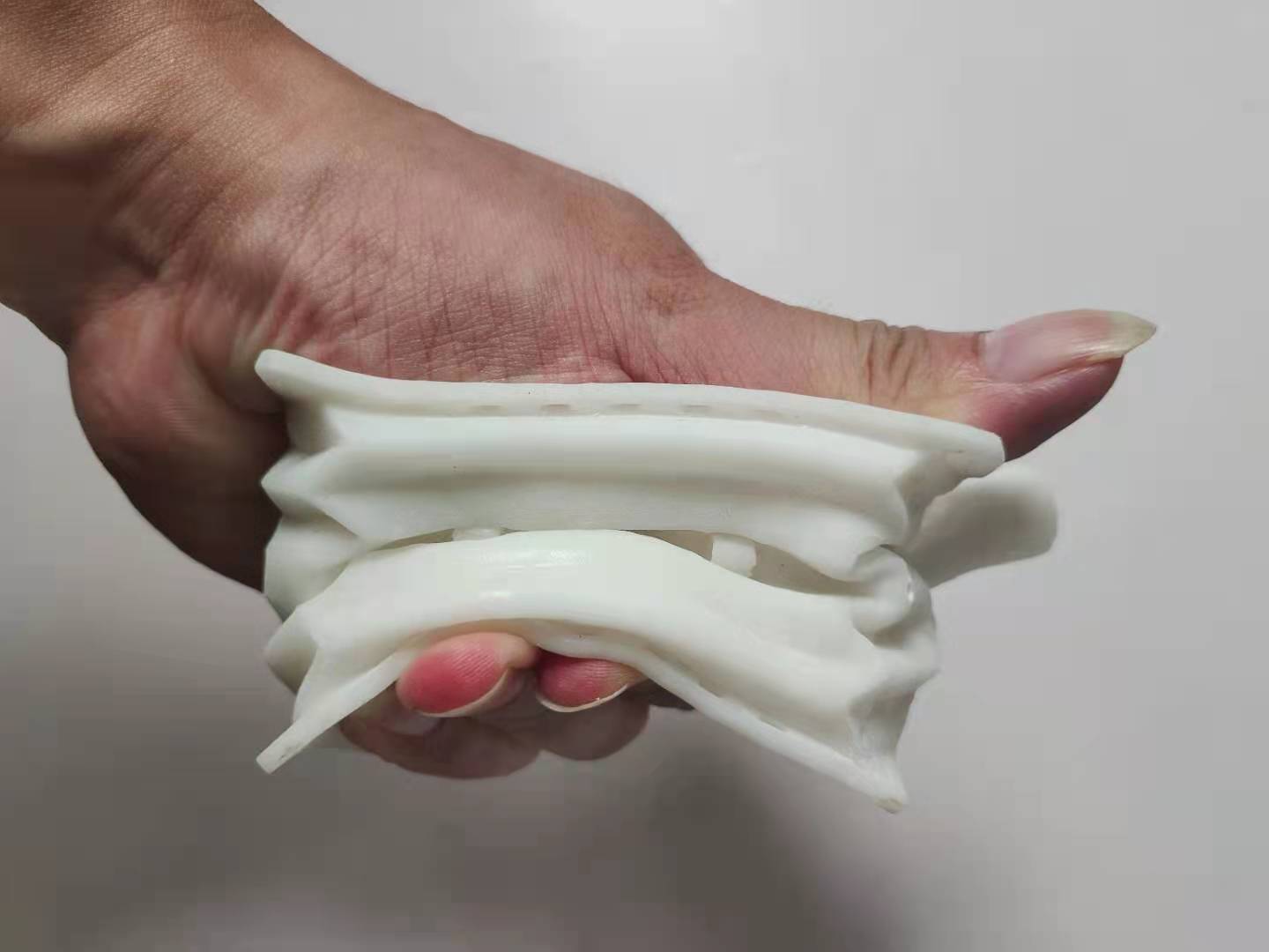 這種為光固化工藝3D打印的tpu材料,硬度為60度,白色,由于是采用光固化工藝打印的,所以打印的時候有支撐,對于內部空心的軟膠打印,里面會殘留支撐。